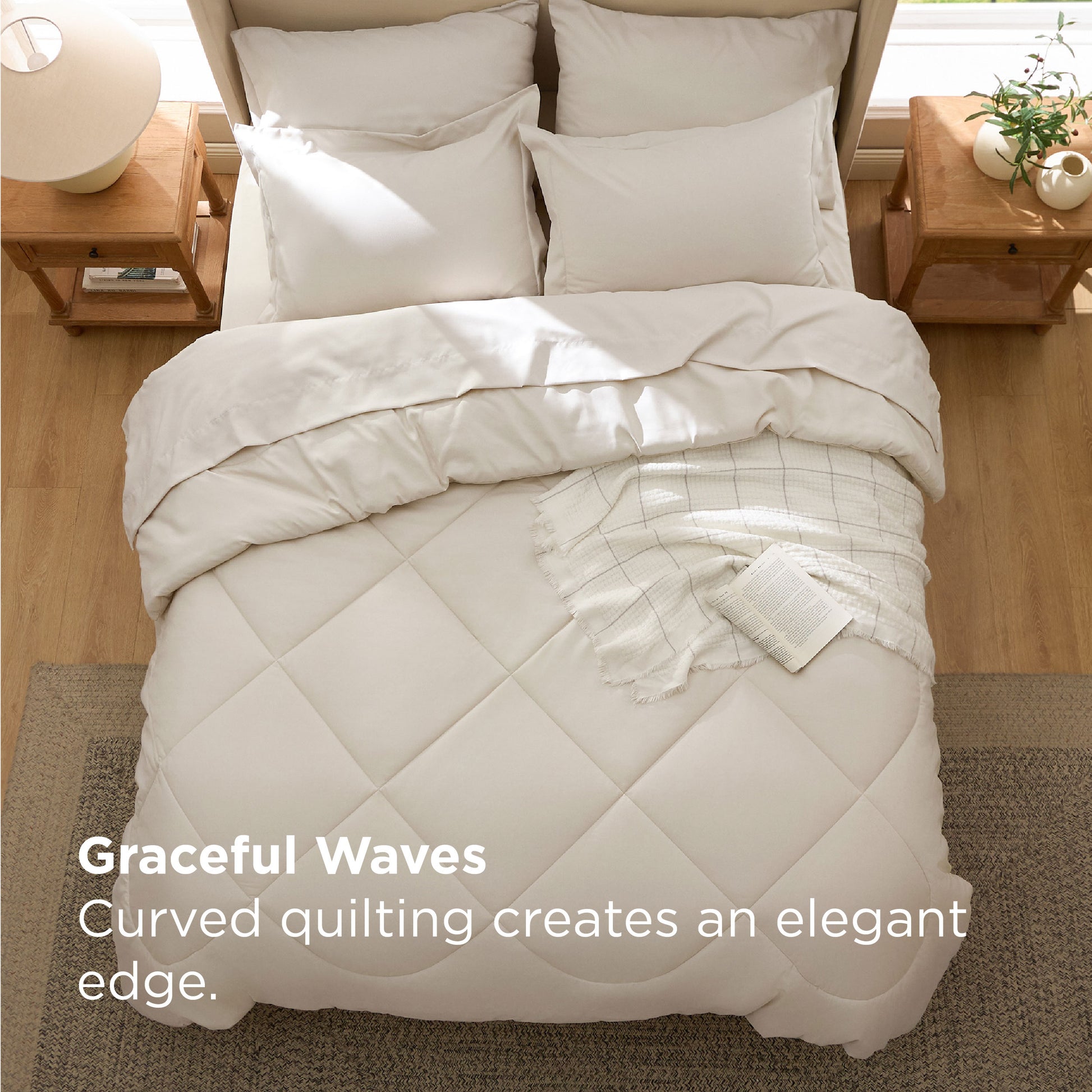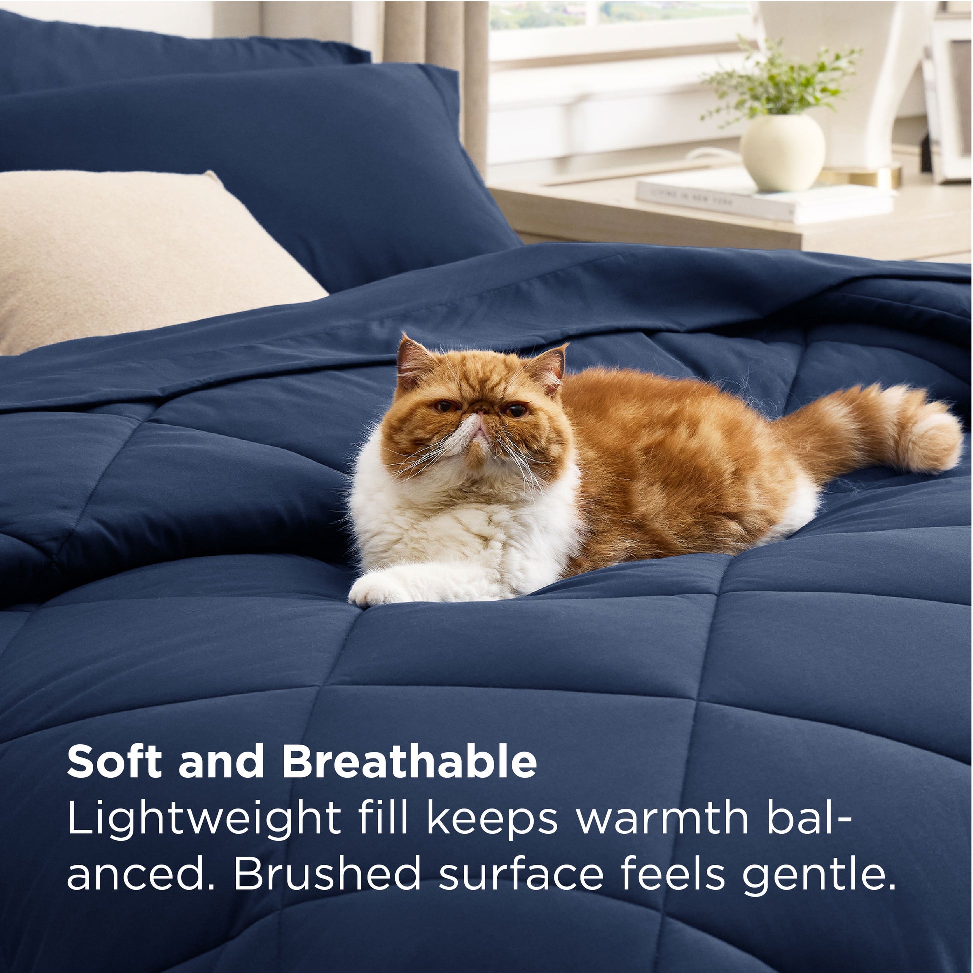 Soft & Skin-Friendly: Crafted with premium brushed polyester, this queen comforter set feels smooth, soft, and gentle on the skin. Filled with lightweight and breathable microfibers, it maintains a perfect balance of warmth and airflow — ideal for year-round comfort.