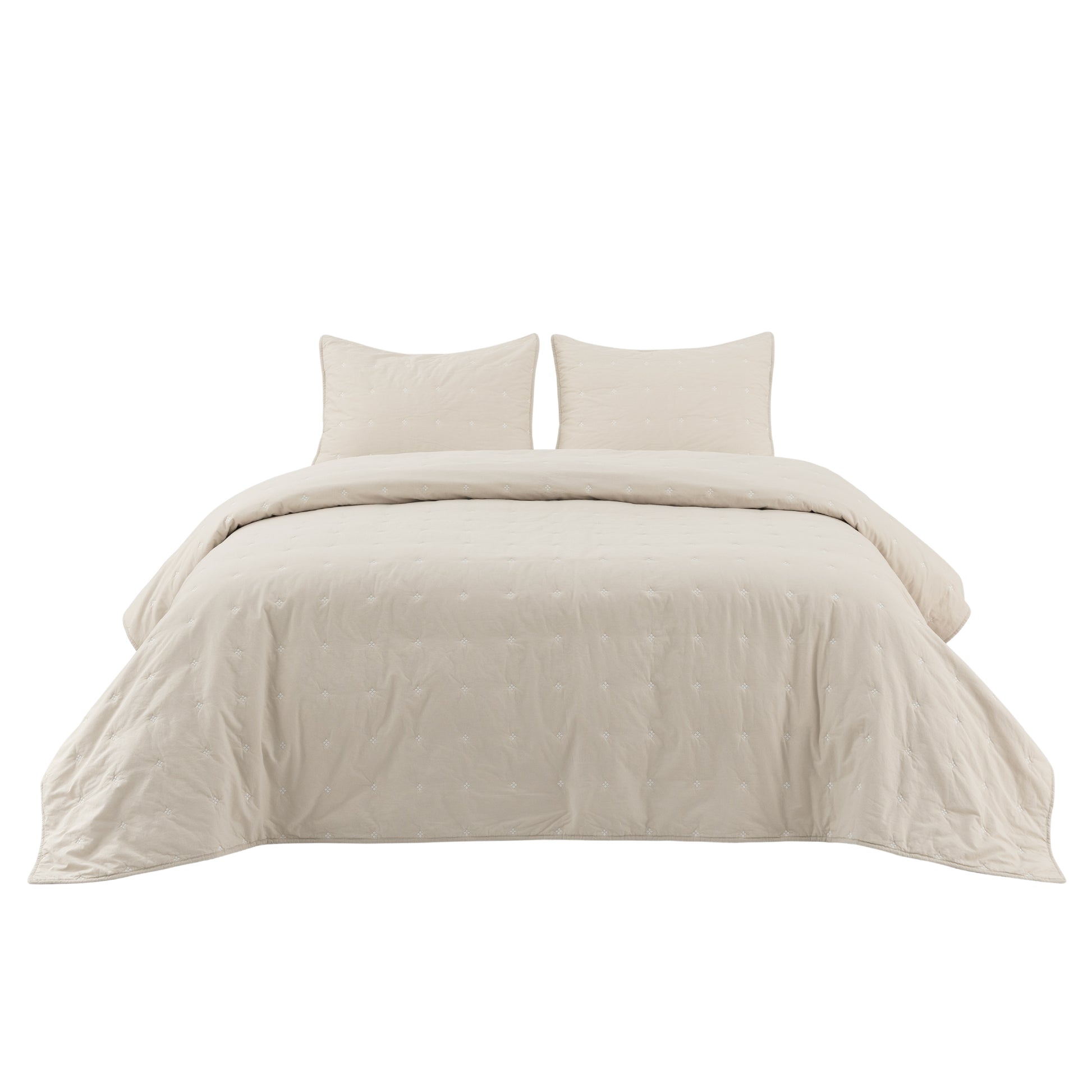 Elegant Handcrafted Stitch Design: Features delicate handcrafted four-leaf clover dot stitching and a crinkled vintage finish, bringing relaxed elegance and a cozy, lived-in look to your bedroom.
