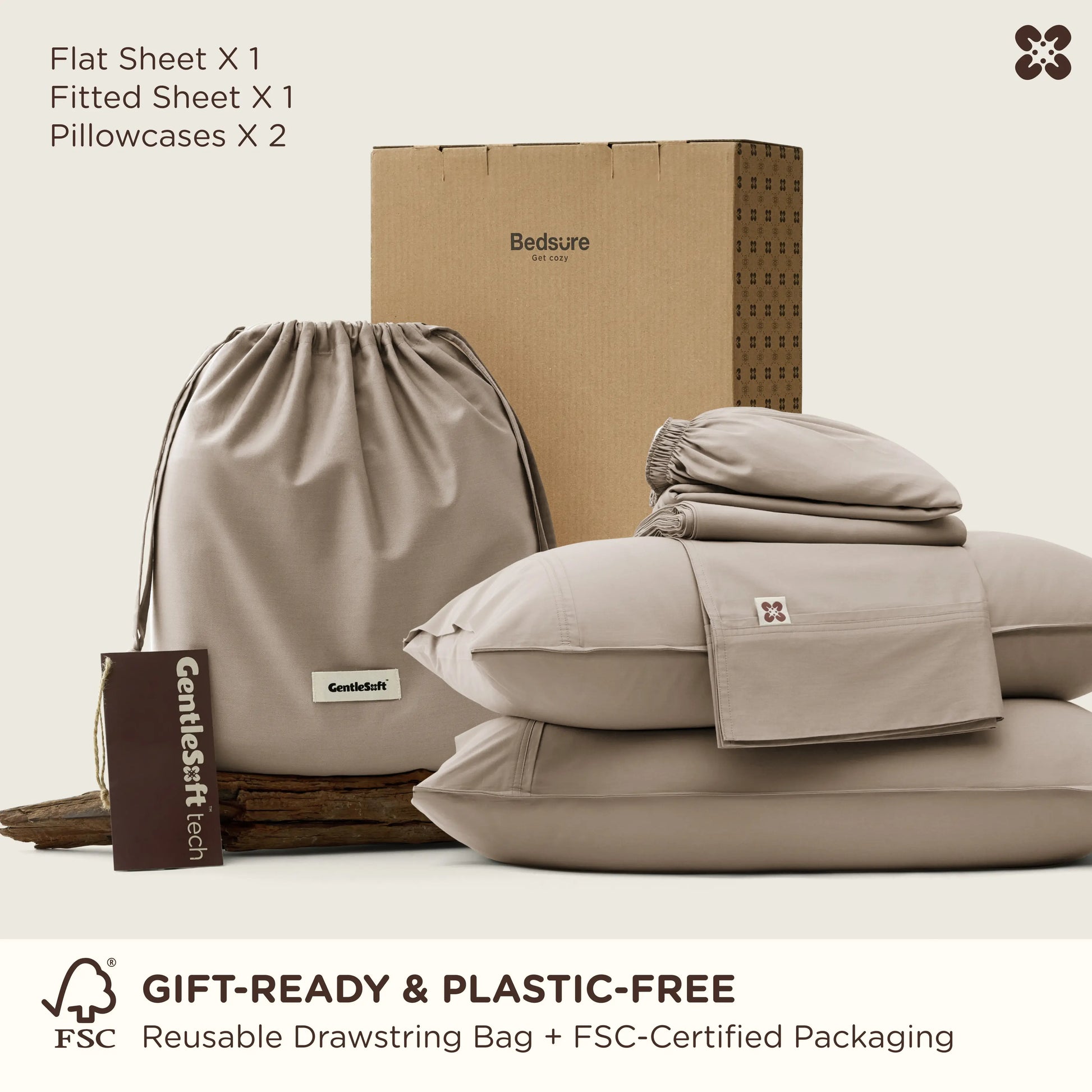 Secure Fit & Durable Easy Care:18” extra-deep pockets, 360° elastic, and 4 silicone corner grips lock fitted sheets in place (no slipping/folding); 8” envelope pillowcases prevent pillow slippage. 145 GSM weight with reinforced stitching resists pilling, fading, and wrinkles—stays fresh after 50+ washes. Machine wash cold, tumble dry low (no ironing needed).