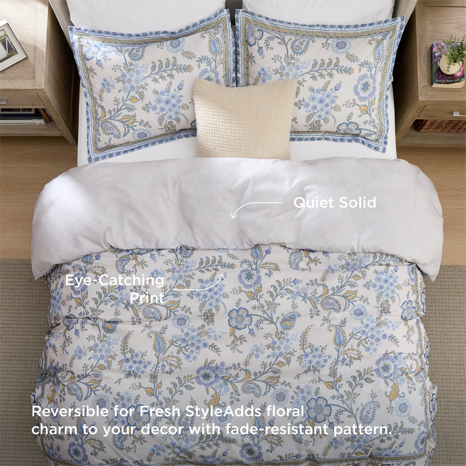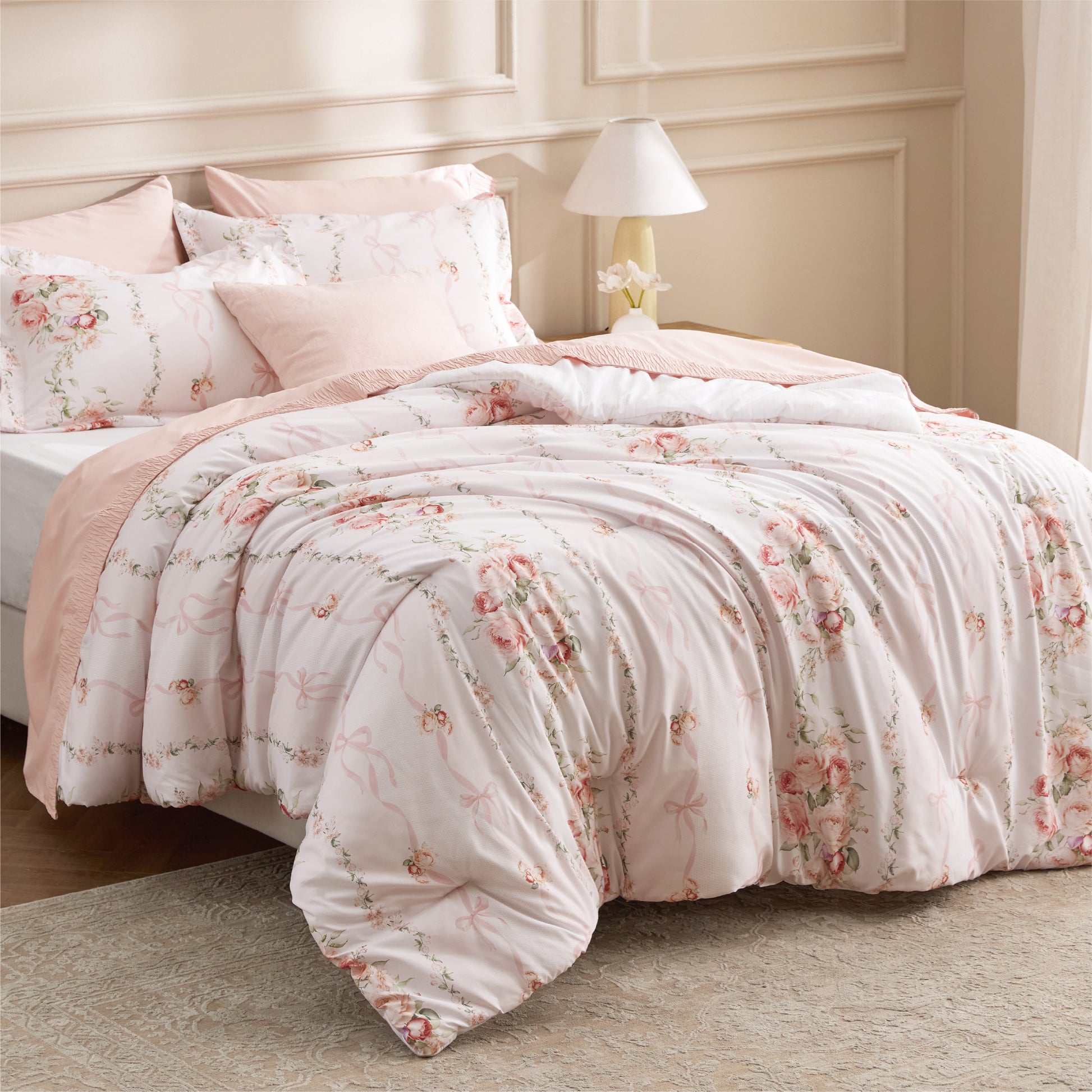 Elegant Botanical Design: Adorned with delicate floral patterns, bringing a serene, nature-inspired elegance to your bedroom.