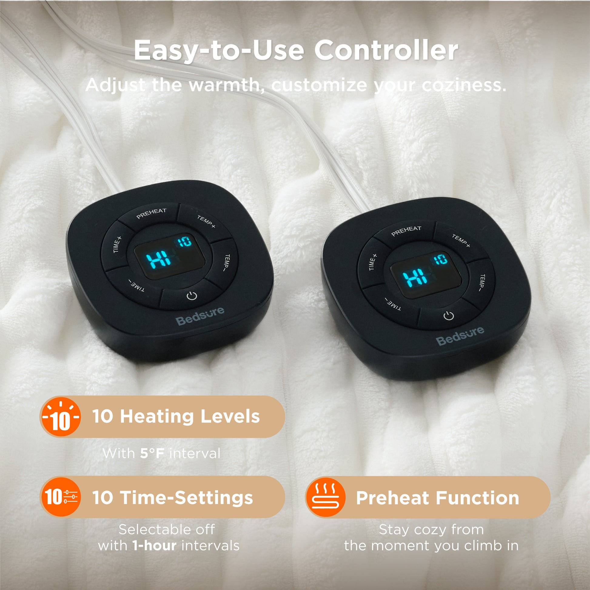Customers say this heated blanket is exceptionally soft and cozy. Many reviews highlight its quick and even heating with multiple temperature settings. The blanket features a convenient timer function and dual controls on larger sizes. While most find it lightweight and comfortable, some mention the power cord could be longer. Reviews frequently praise its softness and warmth retention. Common feedback includes appreciation for the adjustable heat levels and timer settings. Some users note it works best under other blankets for maximum warmth. Most find the controls easy to use, though a few mention the controller light is quite bright at night.